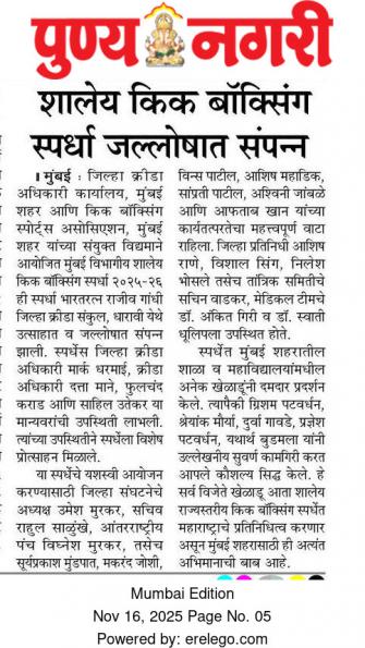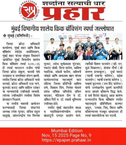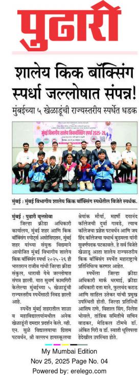 मुंबई विभागातील शालेय किक बॉक्सिंग राज्य स्पर्धेस पात्र खेळाडू