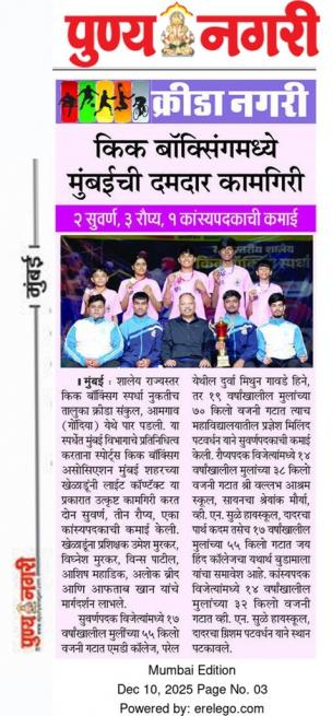 मुंबई शहर जिल्हा संघटनेच्या संलग्न खेळाडूंचे अधिकृत निकाल”